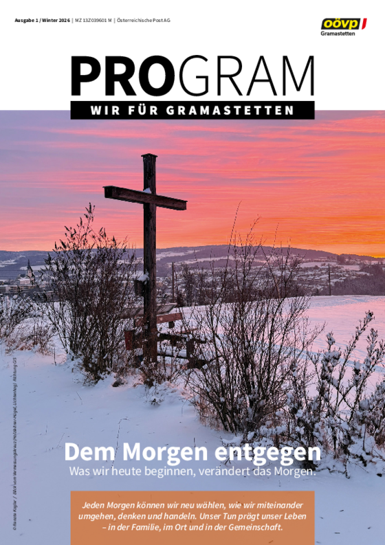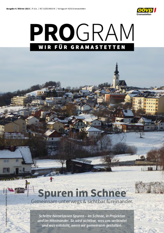 Unser beliebtes PRO.Gram Heft erscheint vier Mal jährlich (Auflage: 2.300 Stück). Als kostenloses ÖVP-Magazin bietet es eine abwechslungsreiche Mischung aus aktuellen Themen, Veranstaltungstipps, Erfolgen und Einblicken unserer Gemeinde. Unser ehrenamtliches Redaktionsteam sorgt dafür, dass es mit spannenden und vielfältigen Inhalten gefüllt ist – von Menschen für Menschen.
