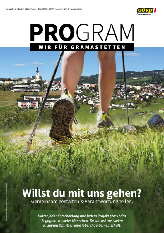 Das PRO.Gram Heft - die größte und beliebteste Ortszeitung in Gramastetten - mit einer Auflage von 2.300 Stück erscheint vier Mal jährlich. Als kostenloses ÖVP-Magazin bietet es eine abwechslungsreiche Mischung aus aktuellen Themen, Veranstaltungstipps, Erfolgen und Einblicken unserer Gemeinde.